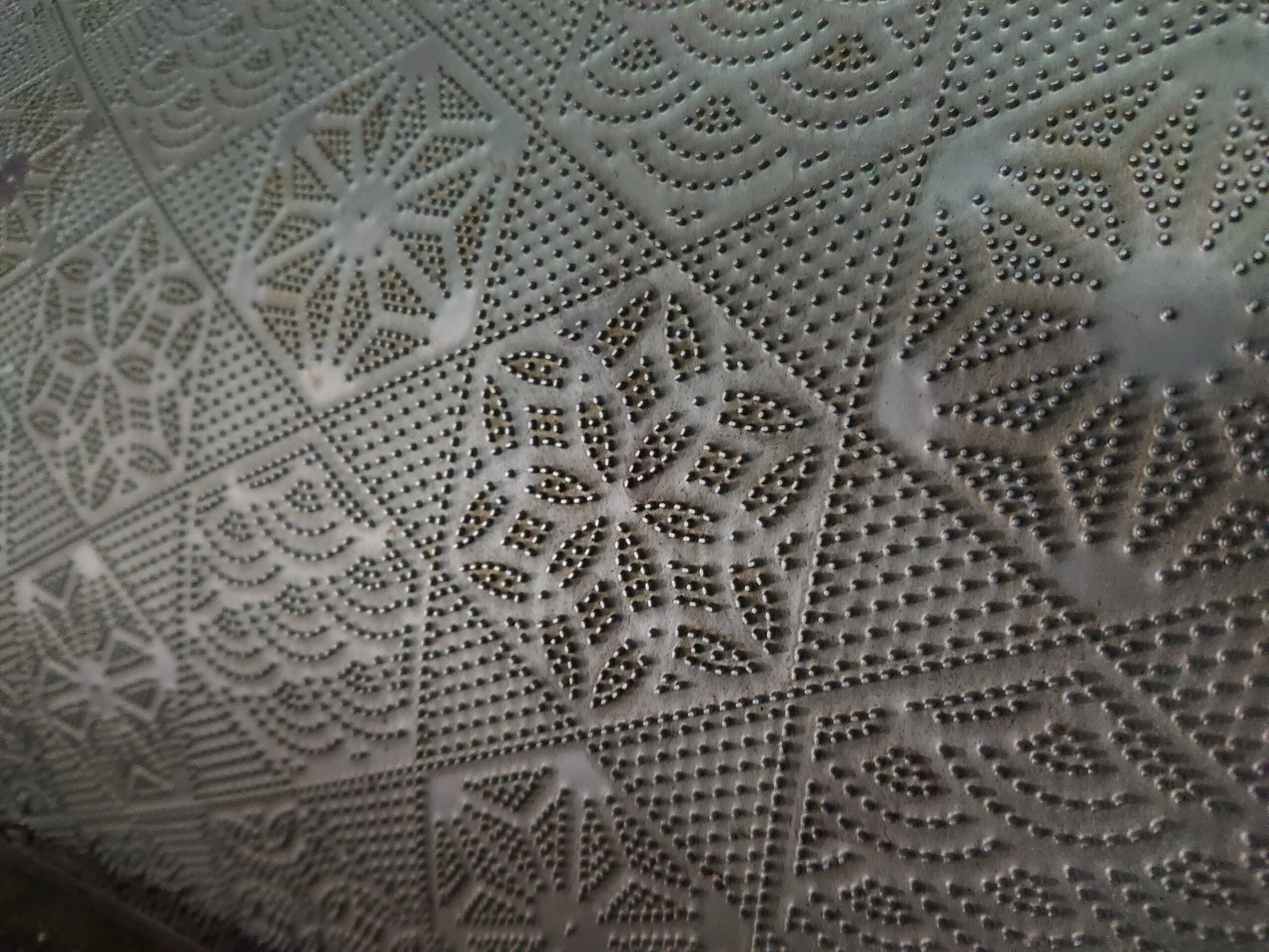 麻の葉・花刺し・青海波という3種の伝統文様を型押しによる凹凸で再現。